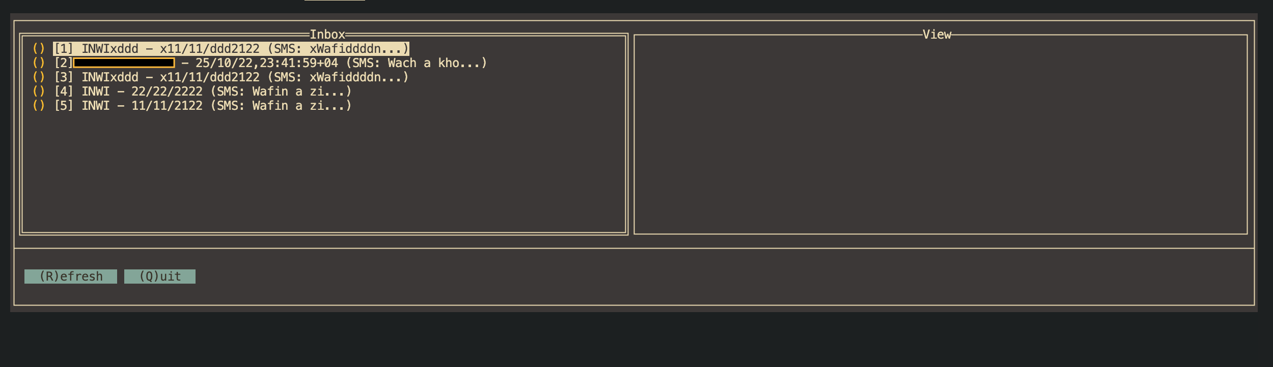 The terminal user interface is built with Go and provides an easy way to view and manage stored messages.